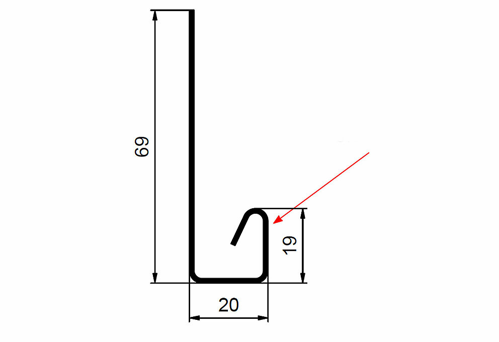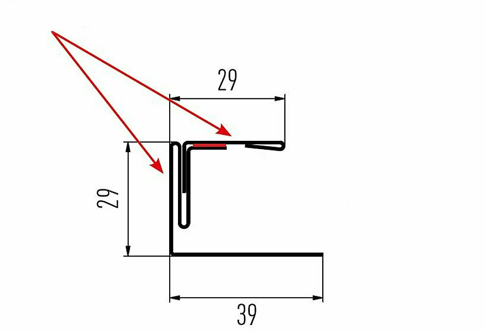 Červená šípka označuje farebnú stranu príslušenstva profilov.