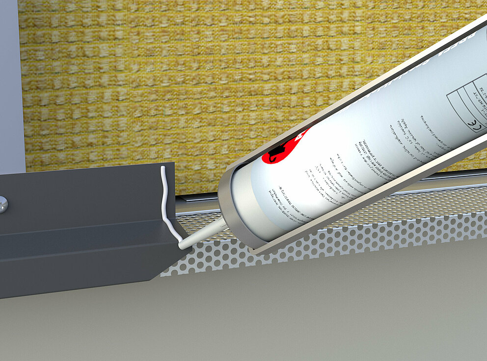 Aby bol pri perforovanej krycej lište zaručený dostatočný prívod vzduchu na prevetrávanie, musí byť vzdialenosť medzi perforovanou krycou lištou a odkvapovým profilom minimálne 10 mm.