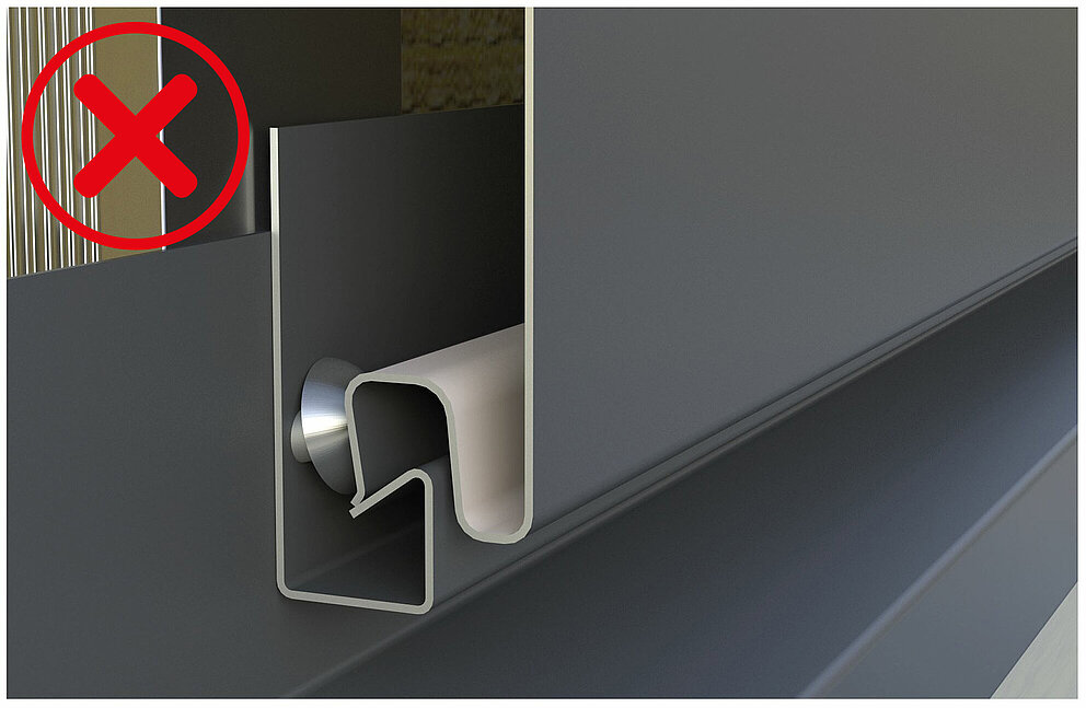 Predtým ako lamely Siding, Siding.X a Siding perforovaný nasuniete na štartovací profil alebo perforovanú kryciu lištu, odstráňte všetky kovové triesky a nečistoty tak, aby skrytý pero-drážkový spoj bez problémov do seba zapadol.