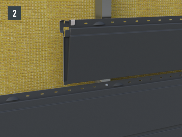 • PREFA škáru upevnite na zadnú stranu lamely Siding pomocou zahnutej príchytky (obrázok 2).