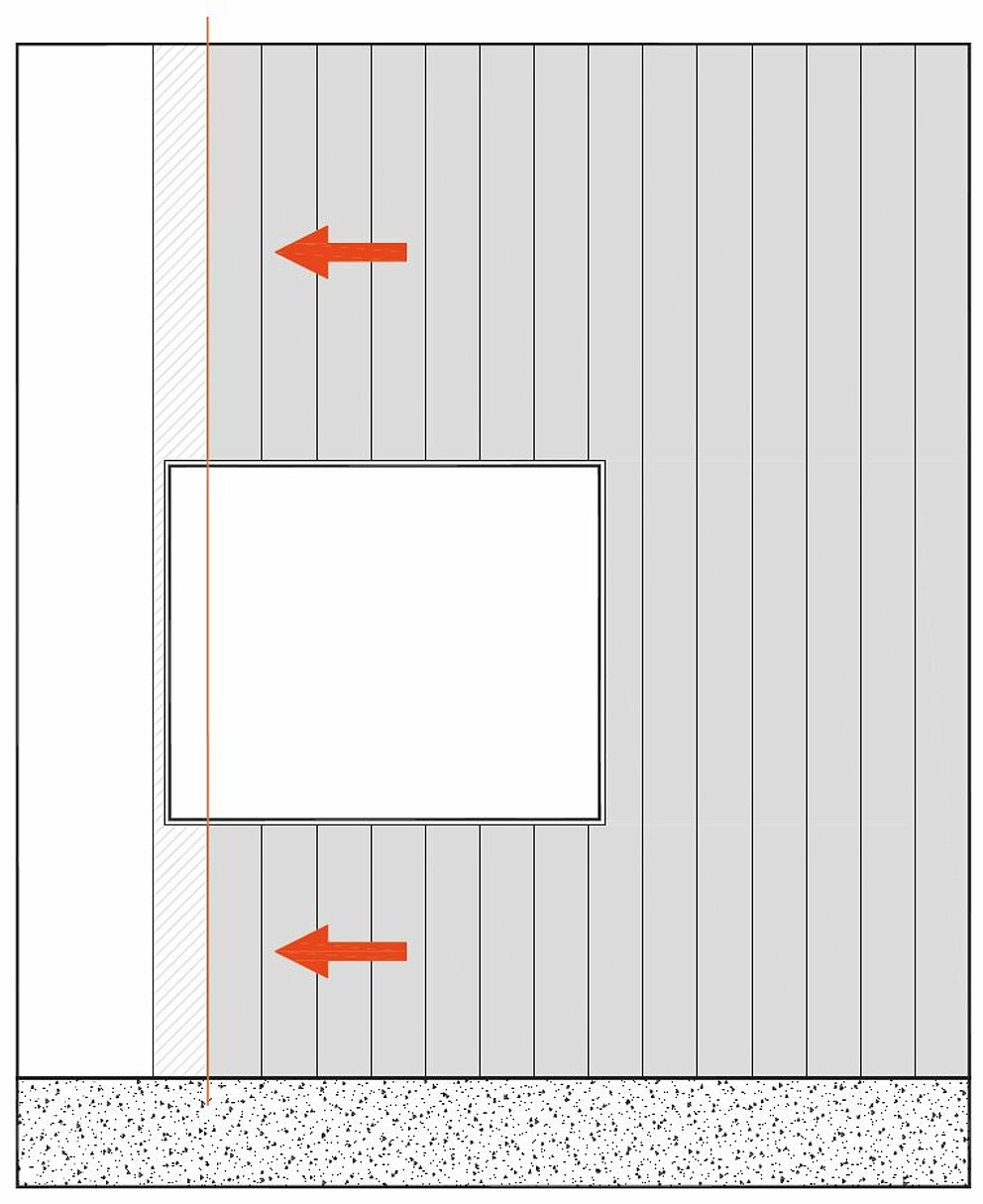 Tak pri vertikálnom, ako aj pri horizontálnom smere montáže odporúčame vykonať šnúrovanie konštrukčnej šírky lamiel Siding okolo okna, pretože inak vzniká nebezpečenstvo narušenia lícovania.