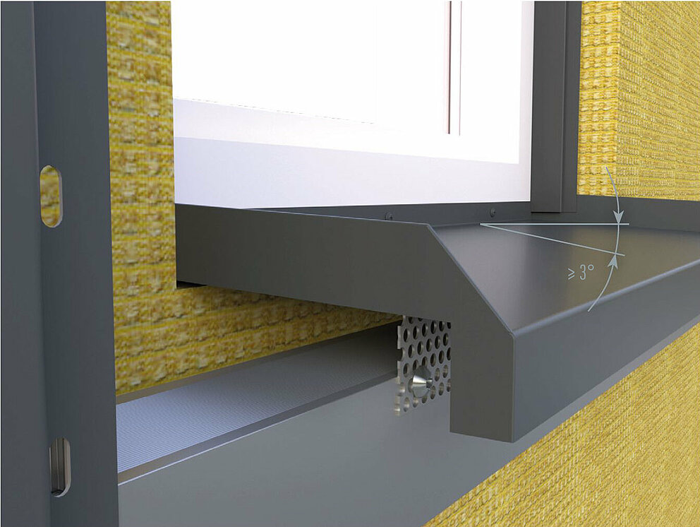 Okenný parapet musí byť vyhotovený so spádom minimálne 3°. Rešpektujte príslušné národné predpisy.