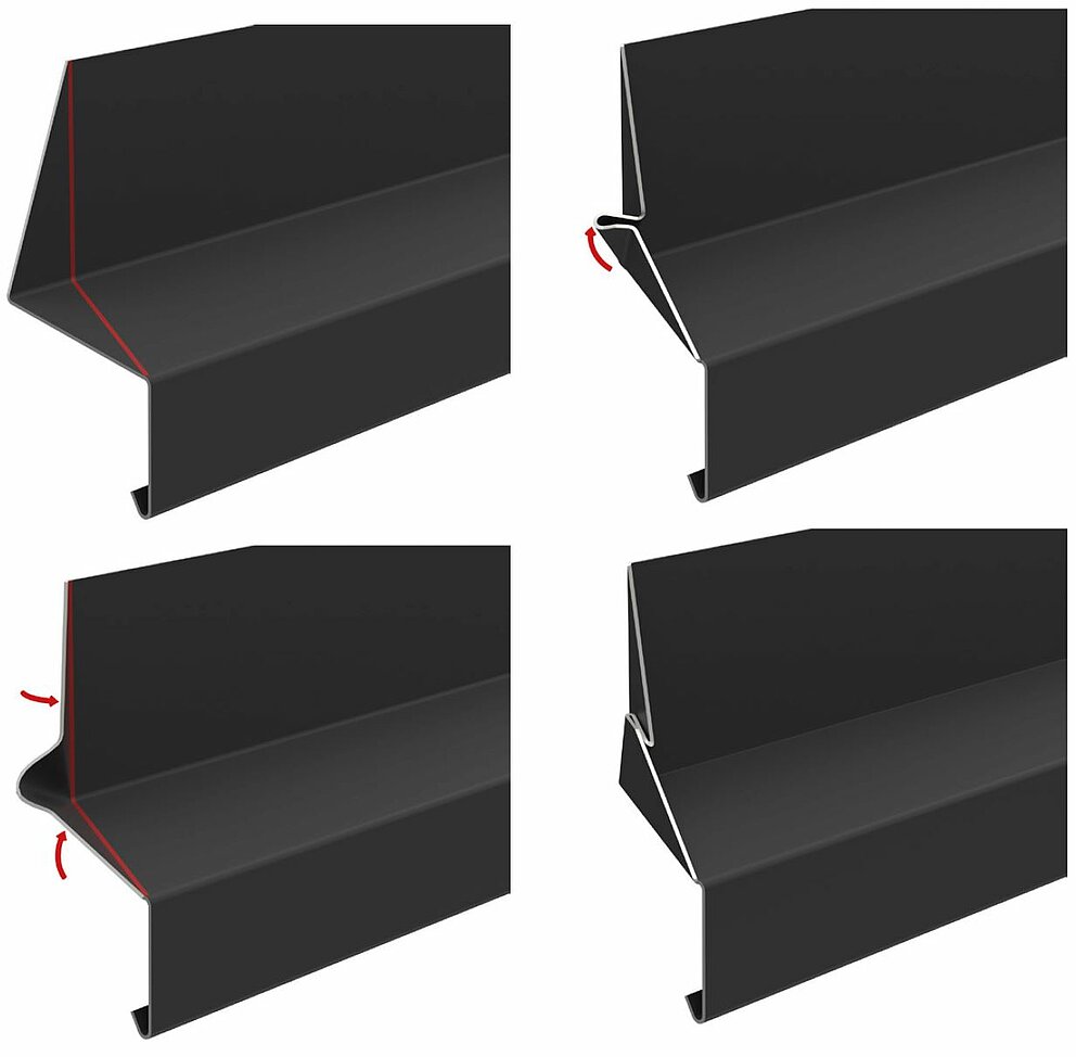 Potom ohnite podľa potreby horný plech ostenia a zasuňte ho do násuvnej lišty. Odkvapový profil sa zavesí do horného plechu ostenia.