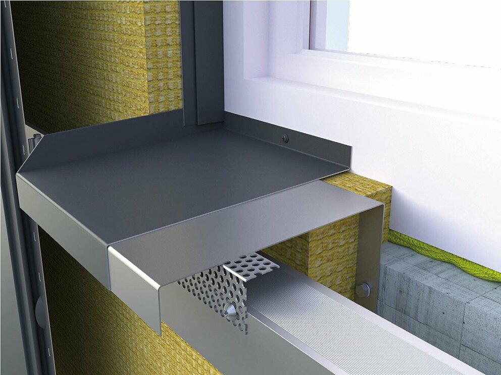 V prvom kroku obloženia okna sa montuje perforovaný plech a pridržiavací pás. Skontrolujte, či nič neprekáža otvoru na odvod vzduchu z prevetrávanej vrstvy.