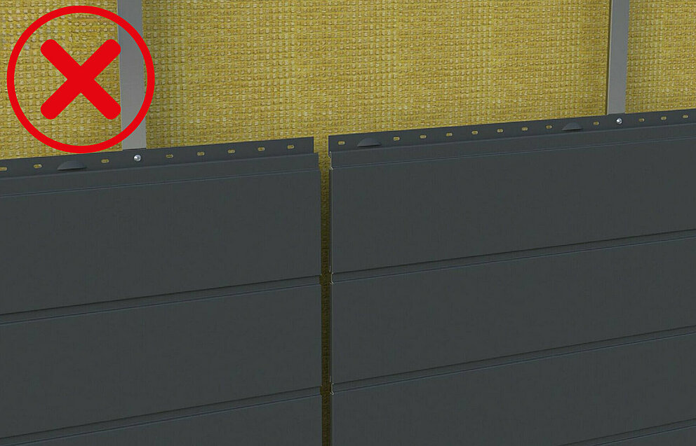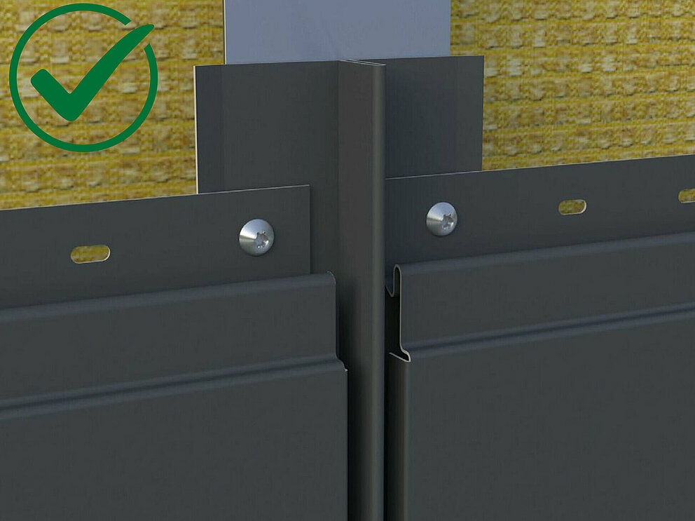 Pri montáži v jednej línii dbajte na to, aby ste lamely Siding spájali na nosnom profile podkonštrukcie, aby bolo možné namontovať stykový plech.