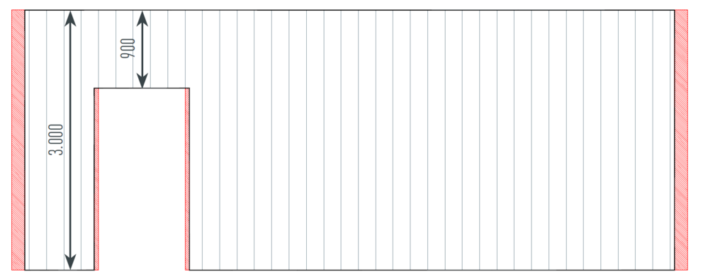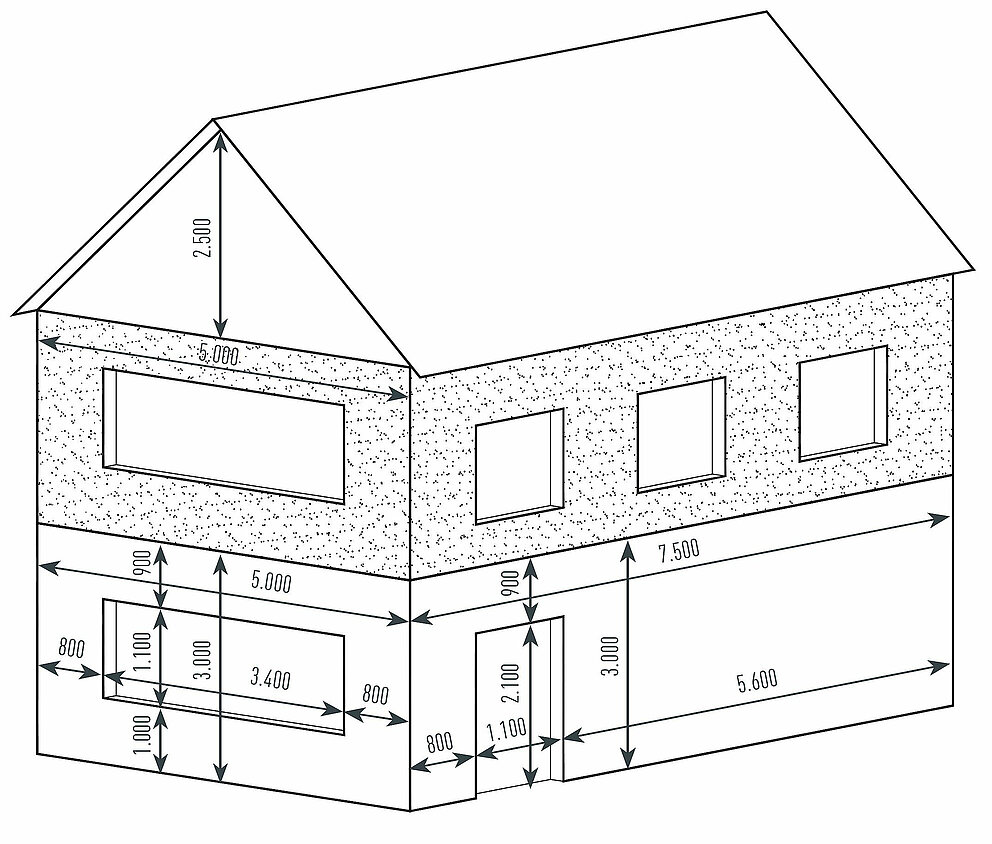 Prerušenia, ako napr. okenné otvory < 1 m², sa nezohľadňujú.
