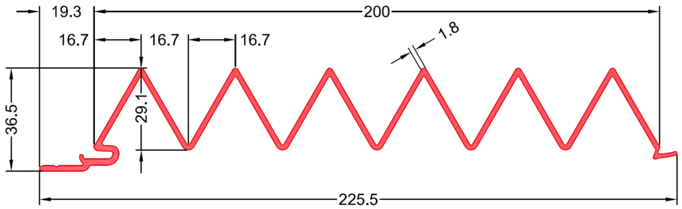 • Celková šírka profilu: 225.5 mm