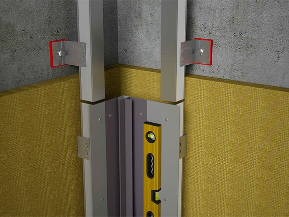Následne môžete na nosný uholník namontovať vnútorné alebo vonkajšie rohové profily. Dbajte pritom na úplne zvislú montáž umožňujúcu dilatáciu a na usporiadanie pevných a klzných bodov.