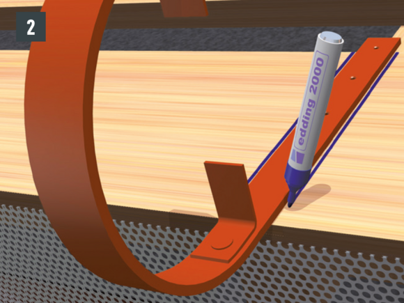 Odkvapové plechy sa musia v oblasti horných držiakov nastrihnúť. Montáž horného držiaka je vhodné vykonávať počas montáže žľabu. Dodatočná montáž pri existujúcich žľaboch je náročná.