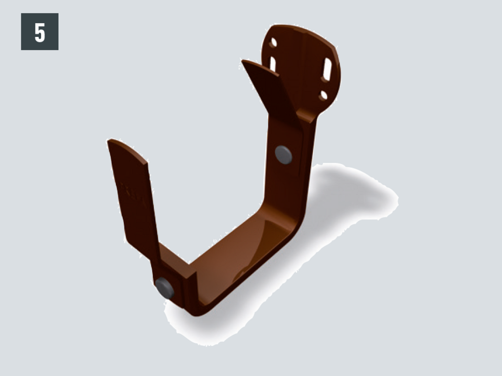 Na dodatočné vystuženie žľabov môžete medzi háky polkruhových žľabov primontovať horný držiak. Horné držiaky PREFA môžete použiť univerzálne na všetky rozmery žľabov.