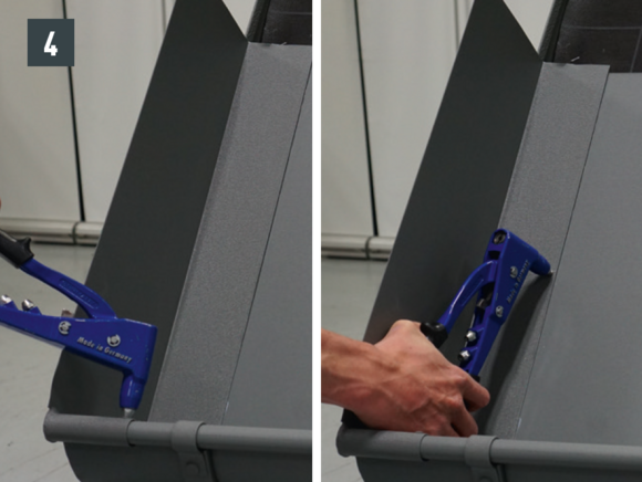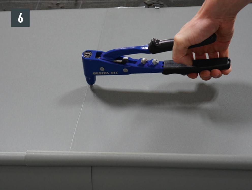 Spájanie nástrešného žľabu možno vytvoriť aj nitovaním pomocou 20 kusov trhacích nitov PREFA 4 x 9,5 mm do kríža s utesnením pomocou špeciálneho silikónu PREFA.