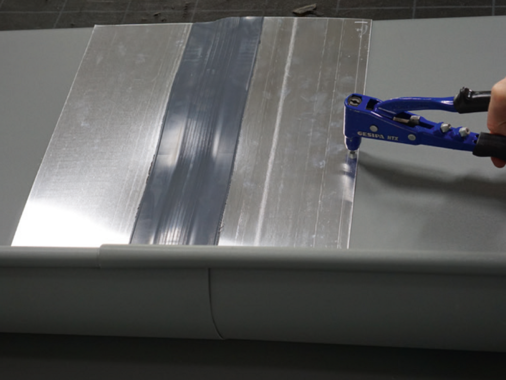 Spoj môžete zhotoviť lepením alebo nitovaním. Nitované spoje treba dodatočne utesniť špeciálnym silikónom PREFA.