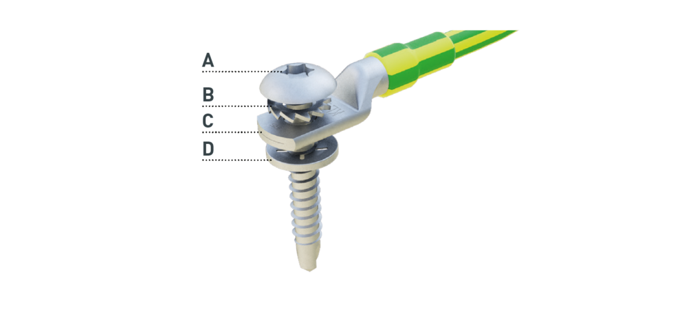Komponent sa skladá aj z montážnej skrutky (A), poistnej matice (B), kontaktu z nehrdzavejúcej ocele (C) a poistky skrutky (D) (pozri obrázok nižšie).