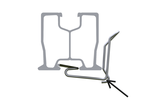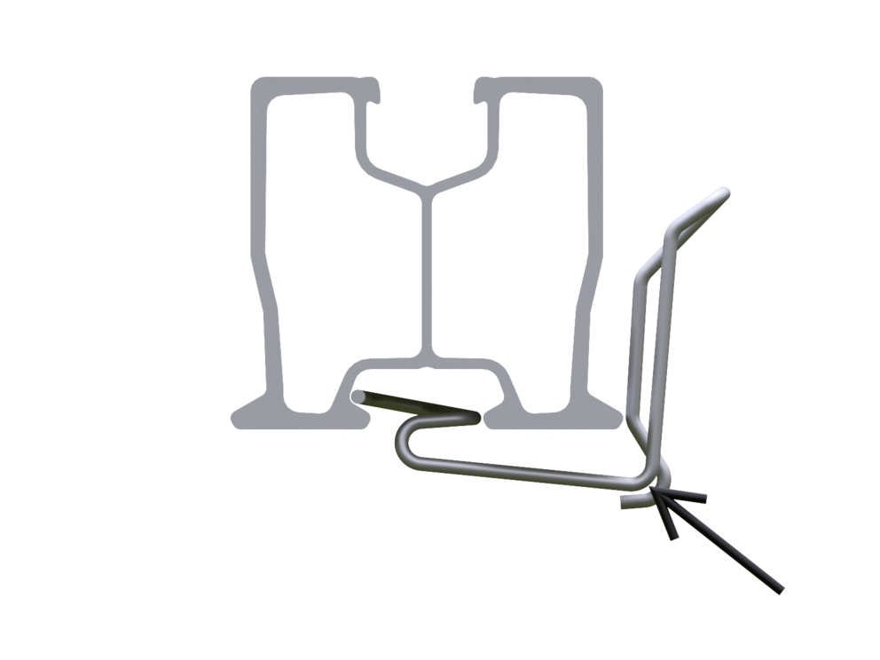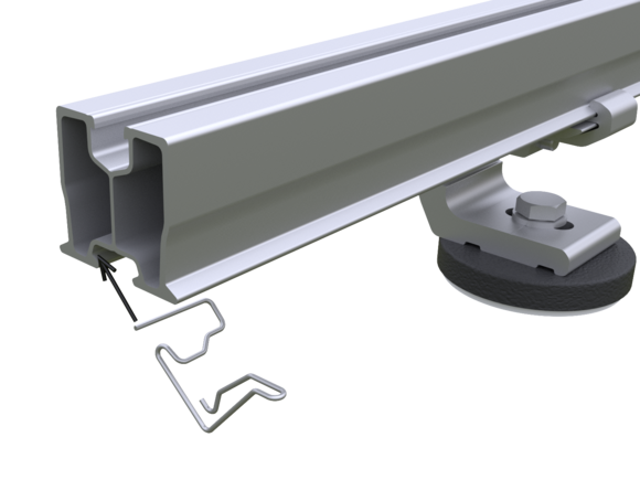 Svorku na uchytenie káblov nasaďte do drážky nosníka šikmo zdola a zaistite ju v nosníku zatlačením šikmo nahor.