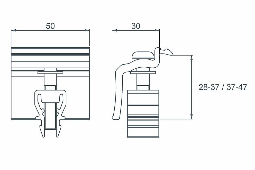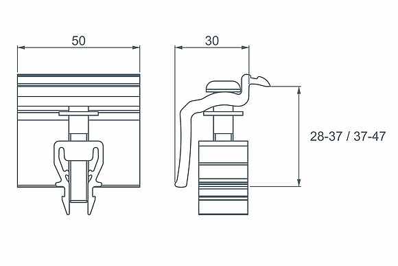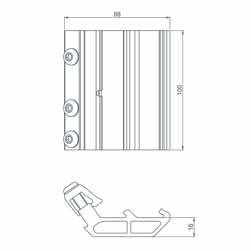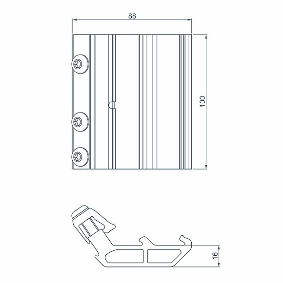 Koncová spojka modulov 28 – 37 mm, hliník Koncová spojka modulov 37 – 47 mm, hliník |