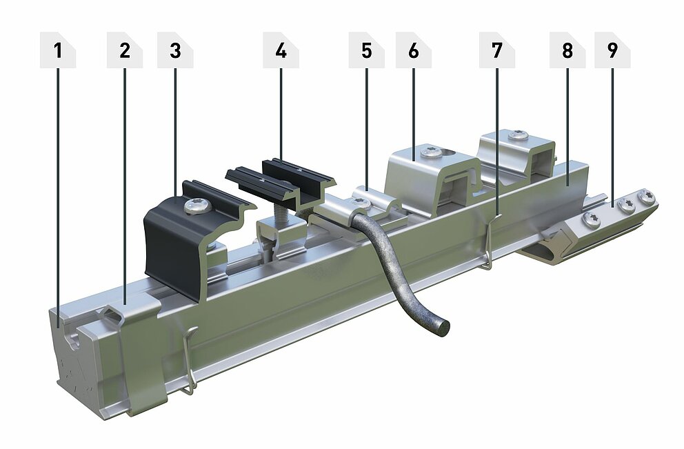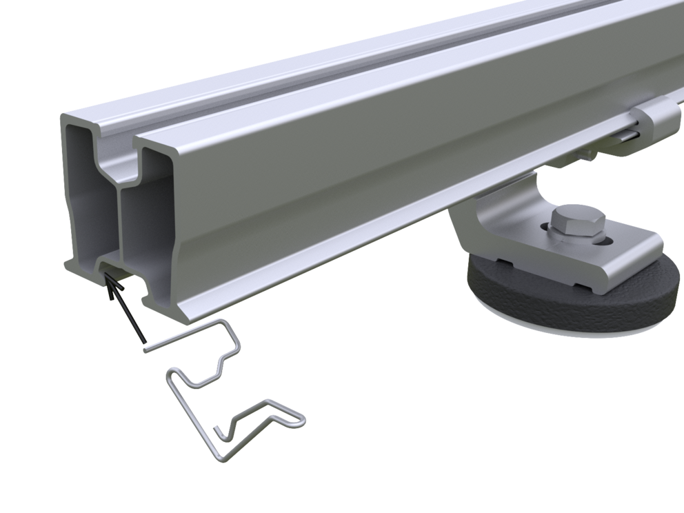 Aby sa zabránilo pádu fotovoltických modulov, montujú sa v montážnom systéme pre solár PREVARIO bezpečnostné skrutky. V najspodnejšom rade modulov funkčnej generátorovej plochy sa pritom na horný nosník modulov upevnia dve bezpečnostné skrutky na modul. Tým pádom zostane padajúci modul zachytený hornou hranou rámu o poistný prvok. Použitý poistný prvok sa nepovažuje za trvalú montáž. Príslušné moduly musíte okamžite premontovať.