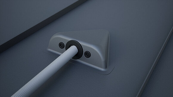 Na zjednodušenie prechodu vlnitej hadice musíte rúrovú manžetu a priechodku ošetriť mastencom. Prihnutie vlnitej rúry o 90° k odkvapu uľahčuje nasadenie priestupového prvku solárnych vedení.