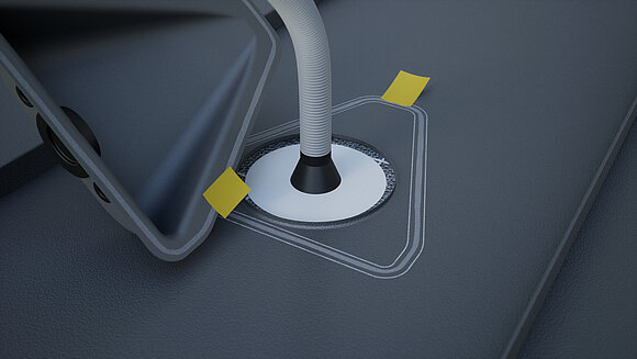 Do vytvrdnutia lepidla môžete priestupový prvok solárnych vedení pridržať v prípade potreby v polohe externými pomôckami.