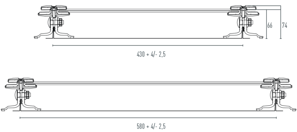 Zohľadnite, že krytinové pásy s dvojitou spodnou drážkou sa z dôvodu menšej straty na drážku sa musia odstrihnúť o 10 mm, aby sa dodržal osový rozmer 430/580! Montáž na krytinové pásy s dvojitou spodnou drážkou z dôvodu väčšej straty drážky 10 mm nie je možná.