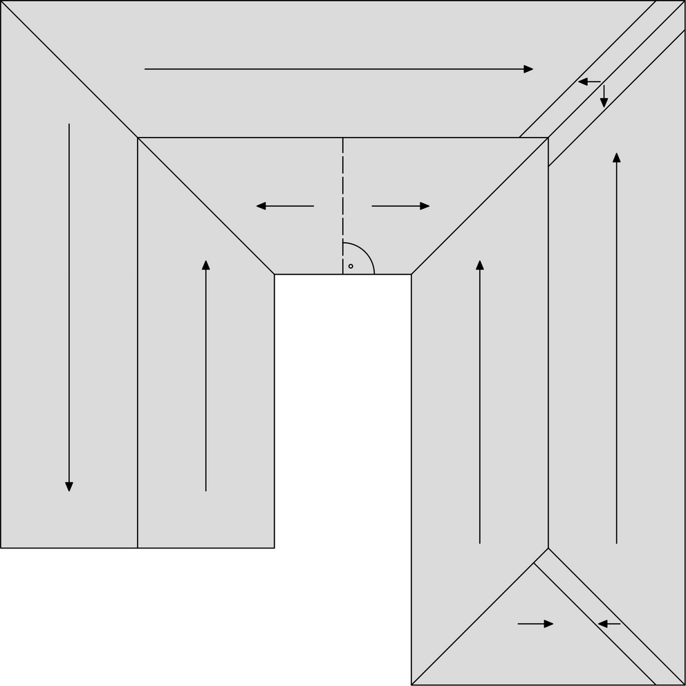 V oblasti hrebeňa a úžľabí je smer pokládky záväzný z dôvodu potrebného prekrytia.