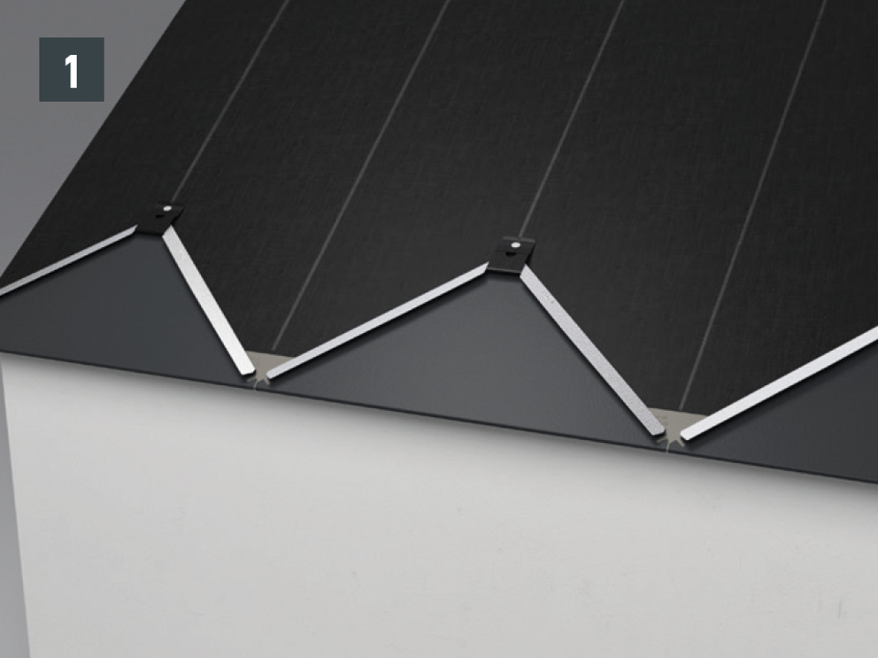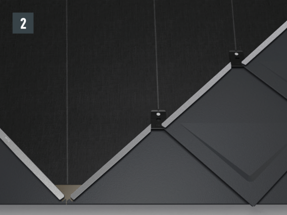 • Strešnú šablónu 29 × 29 zasuňte do falcov a vyrovnajte podľa zvislého šnurovania (obr. 1 a 2).