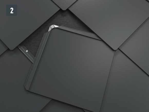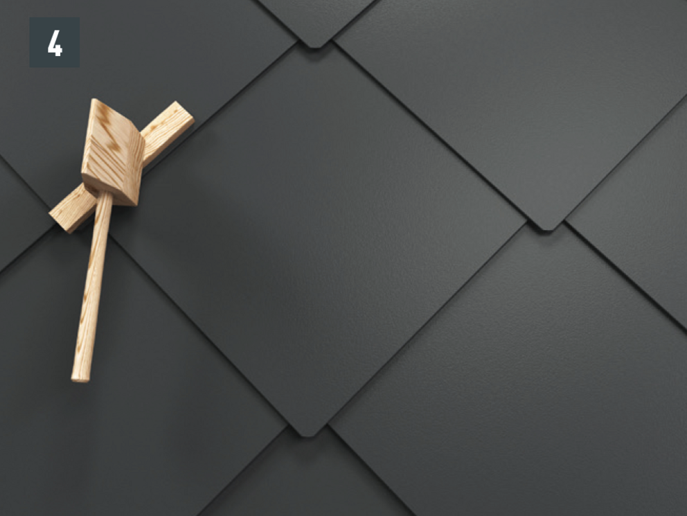 • Pootvorte mierne závesný falc novej strešnej šablóny 44 × 44, zatlačte ju nahor a upevnite (obr. 3).