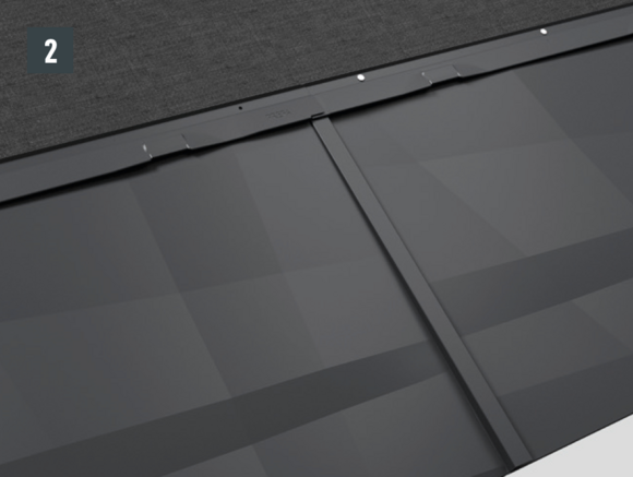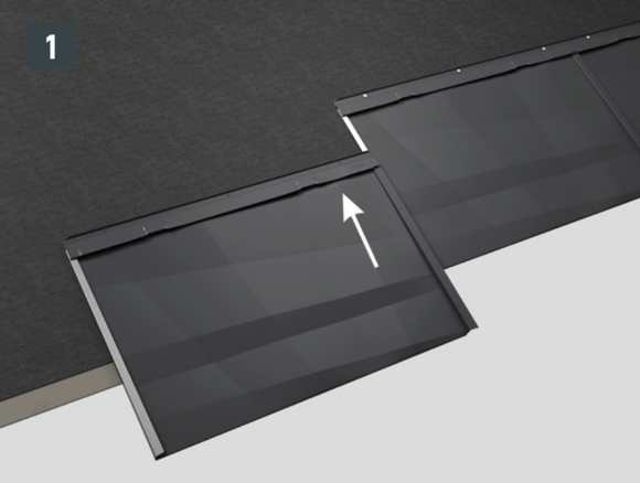 • Strešný panel FX.12 vyrovnajte a zasuňte do falcov (obr. 1 a 2). Zľahka poklepte násadou kladiva na spodný okraj panelu.