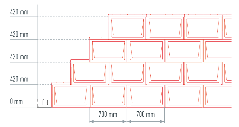 Vertikálne šnurovanie: 700 mm (každý druhý rad posunutý o 350 mm)