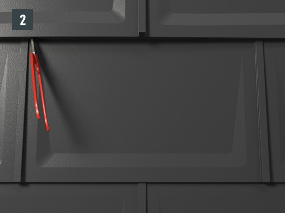 • Odstráňte upevnenie a nastrihnite horný patentový falc (obr. 2).