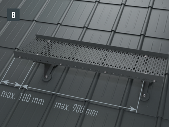 Základným predpokladom je správne položená strešná krytina PREFA podľa montážnej príručky a konštrukčne stabilná celoplošná podkonštrukcia (celoplošné debnenie s hrúbkou minimálne 24 mm). Vzdialenosť krokiev nesmie presiahnuť 1 000 mm. |