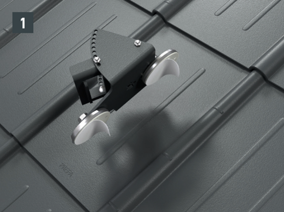 Ako kotviaci bod na šikmej streche pre jednu osobu s osobnými ochrannými prostriedkami a tlmičom pádu podľa EN 355. Na zavesenie strešných rebríkov a upevnenie strešných stoličiek. Nezabudnite na fotodokumentáciu odborného upevnenia na konštrukciu.
