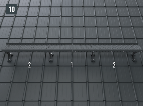 Systém držiakov strešnej lávky sa smie používať len na prístup na strechy a nie ako viazací bod pre osobné ochranné prostriedky alebo na upevnenie bremien. Držiak strešnej lávky je v súlade s normou EN 516, trieda K1, typ A. Pre strechy so sklonom 12 – 55°.