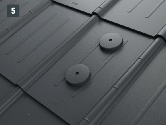 4 Príp. spevňovacia podložka (vždy sa vyžaduje pre strešné šablóny a strešné šindle PREFA) |