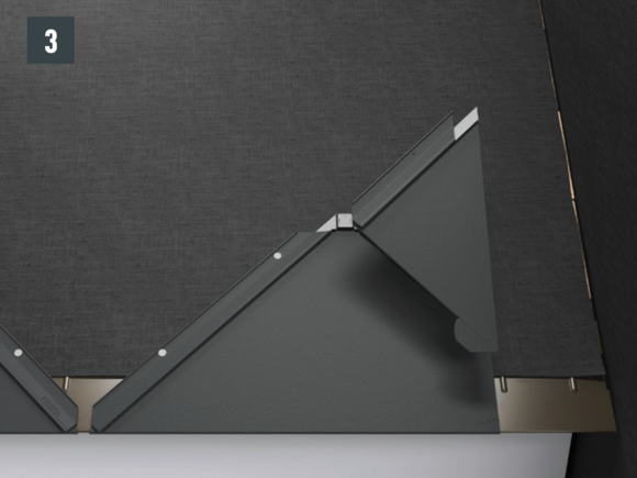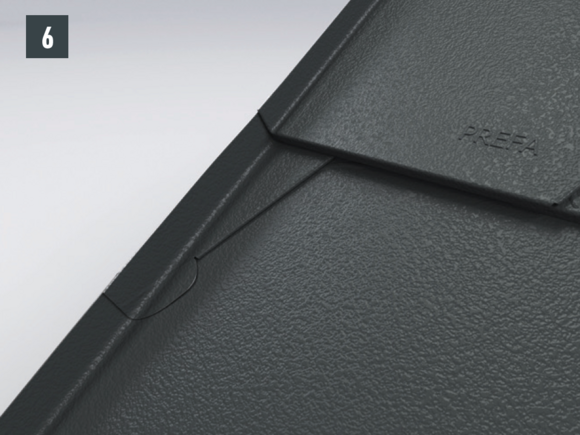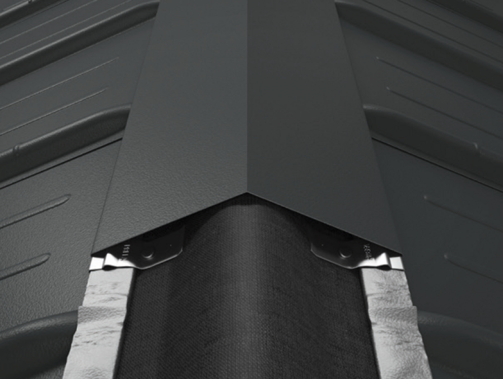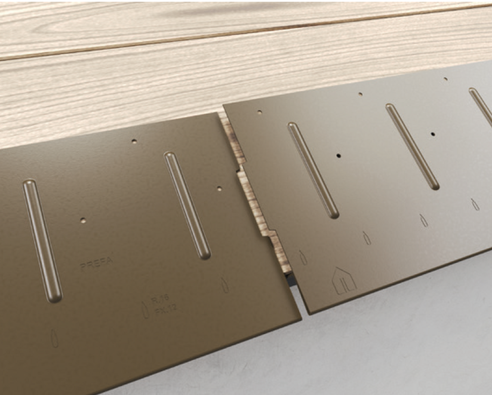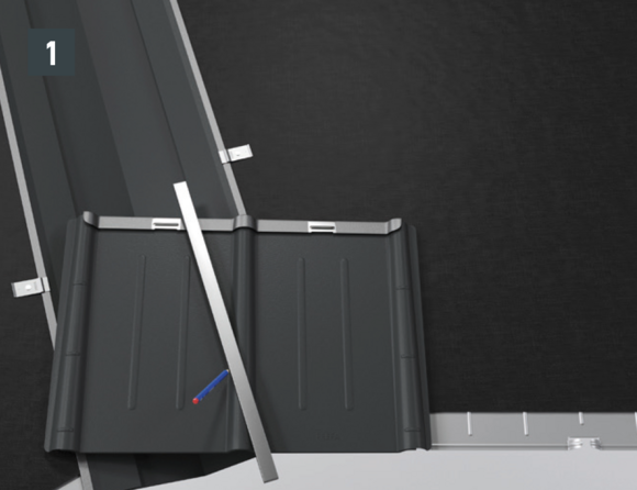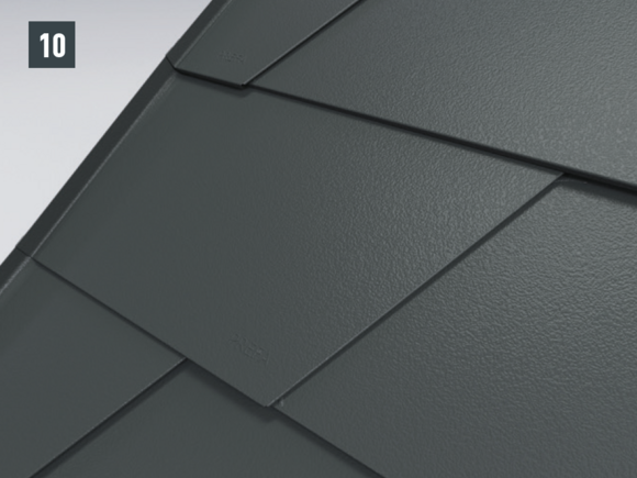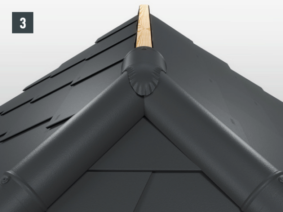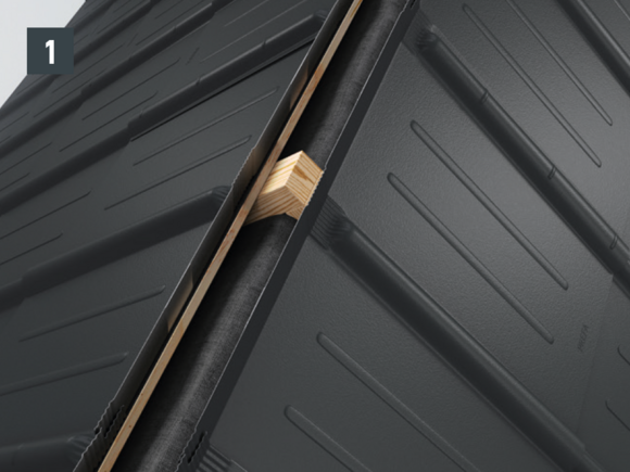 Ak je vzdialenosť medzi strešnou krytinou PREFA a bodom hrebeňa menšia ako 150 mm a nie je potrebné odvetrávanie, môžete použiť jednoduchý hrebenáč na hrebeň.