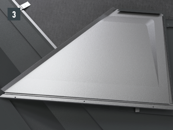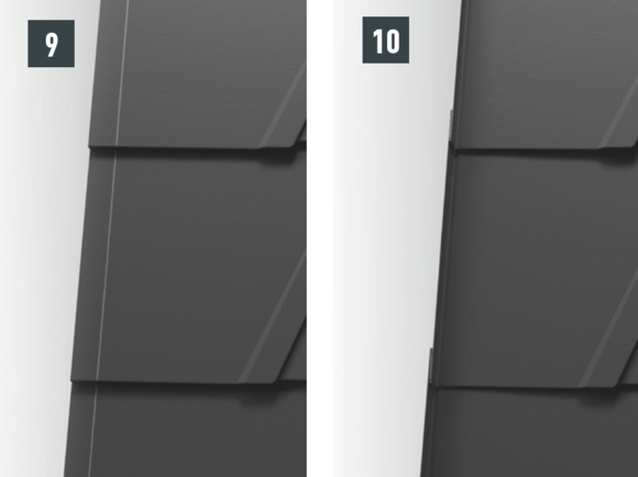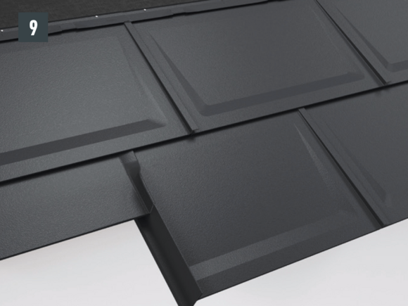 Ak má byť na strešné šablóny 29 × 29 alebo 44 × 44 namontovaný priebežný štítový plech, musia sa použiť ukončovacie šablóny pre strešné šablóny 29 × 29, resp. 44 × 44. Umožnia vytvorenie vodorovnej závesnej drážky.