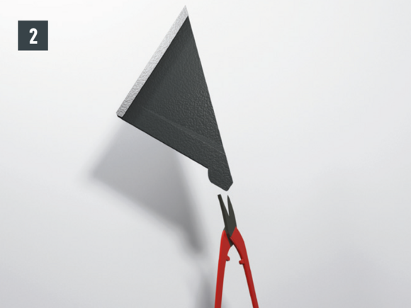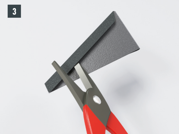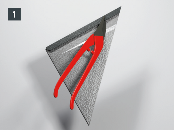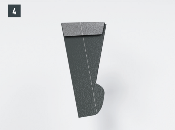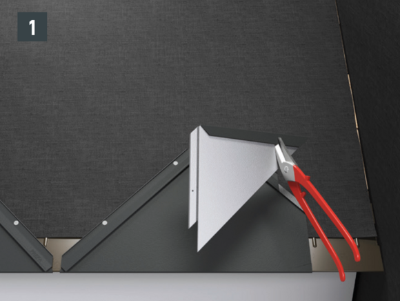 Pri každom bočnom vyhnutí strešnej šablóny 44 × 44 (záveterná lišta a lemovanie) vystrihnite a vyhnite falce prechádzajúce šikmo nadol na spodnej strane.