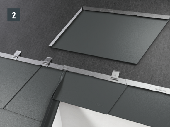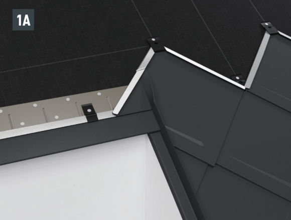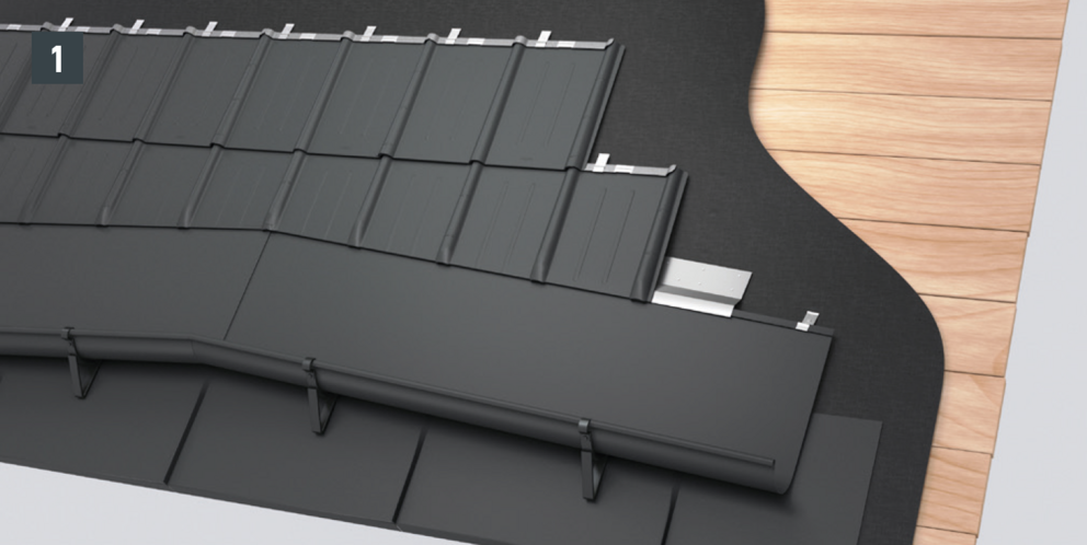 Pri odskokoch strechy so strešnou šablónou 29 × 29, resp. 44 × 44 je vo väčšine prípadov potrebné prispôsobiť oplechovanie odkvapu. Týmto sa môže začať so štartovacou šablónou pre strešné šablóny 29 × 29 alebo 44 × 44 (obr. 1A a 1B).