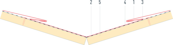 Pri každom bočnom vyhnutí strešnej šablóny 29 × 29 (záveterná lišta a lemovanie) vystrihnite a vyhnite falce prechádzajúce šikmo nadol na spodnej strane.