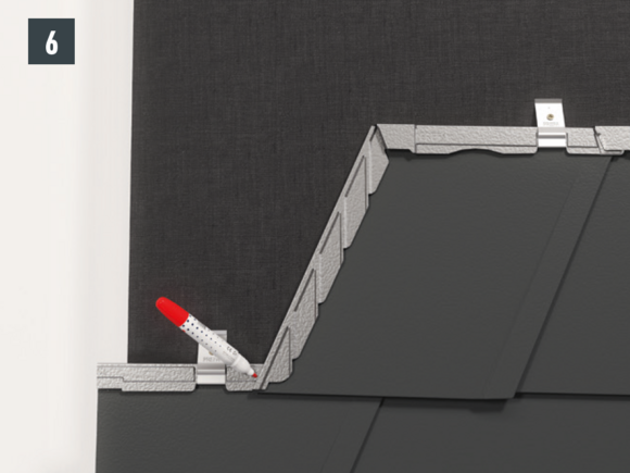Zopakujte príslušný postup na druhej strane odkvapu a spojte tieto značky vodorovne položenou farbiacou šnúrou.