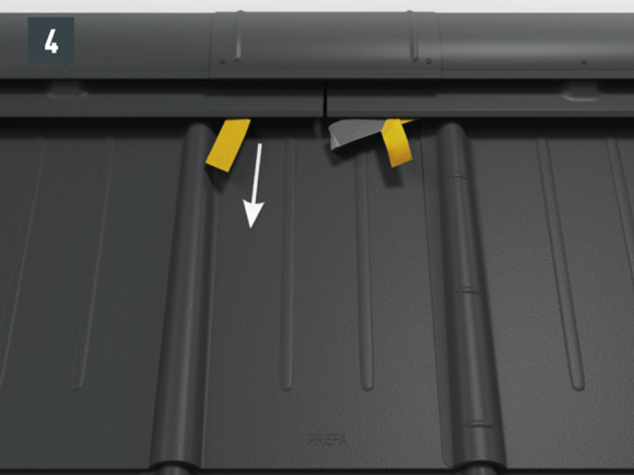 Podkladový pás vyrovnajte pomocou reliéfnych značiek pre strešný panel R.16 alebo strešný panel FX.12 podľa stredu strechy.