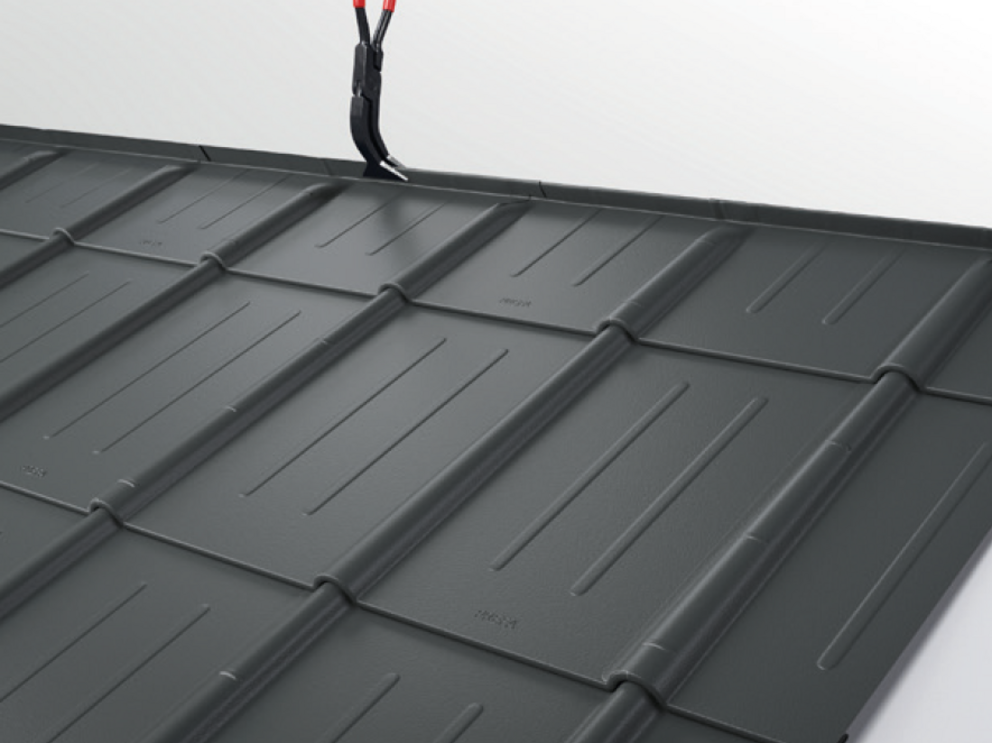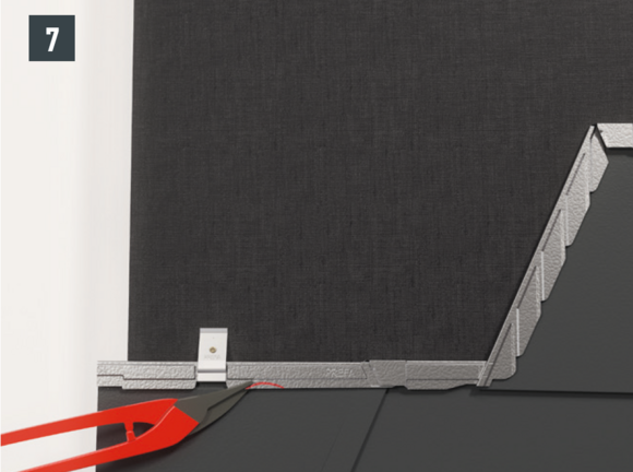 Po zastrihnutí strešnej krytiny PREFA vytvorte závesnú drážku.