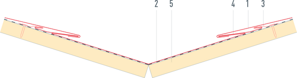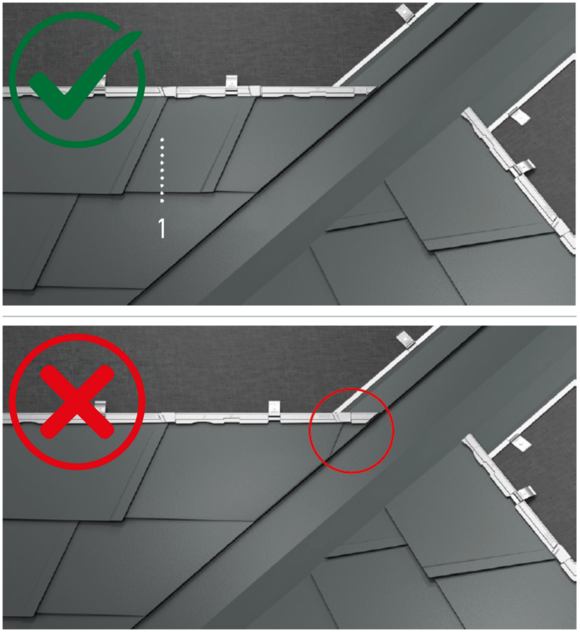 Na každom ľavostrannom vyhnutí strešného šindľa (štítový pás a lemovanie) sa musia falce prechádzajúce šikmo nadol upraviť tak, aby sa zabránilo kapilárnemu vzlínaniu.