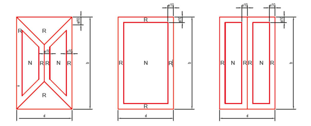 e = b alebo 2*h (menšia hodnota je rozhodujúca) – rozostup sa vzťahuje na pôdorys