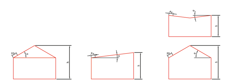 ed = rozstup na strešnej ploche; ed = (e/10) / (cos)