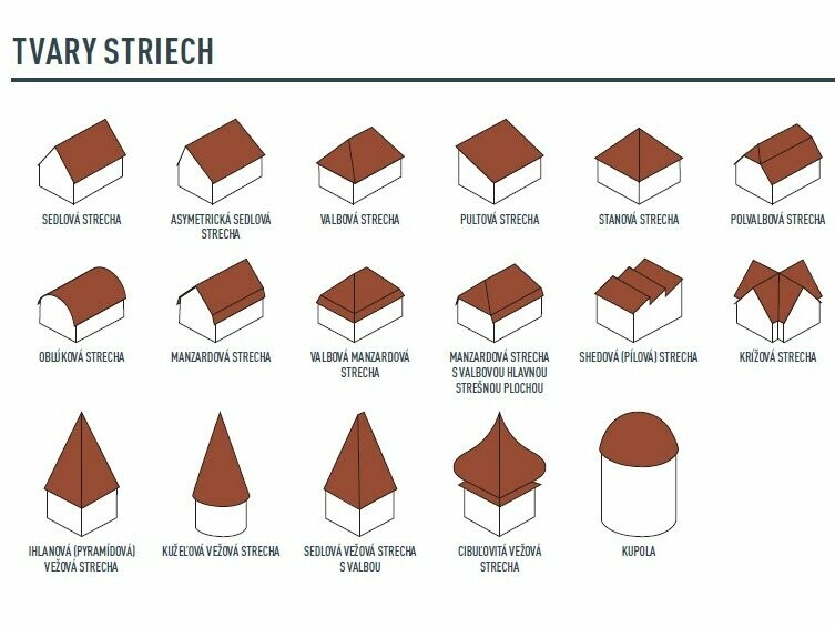 Prehľad rôznych tvarov striech a konštrukčných návrhov: